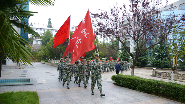 9月14日,我校2018級(jí)新生順利完成了十公里行軍拉練軍訓(xùn)科目。上午8:20,新生們身著迷彩服,從北新街校區(qū)出發(fā),沿江濱大道、商鞅大道、比亞迪大道步行抵達(dá)丹江校區(qū)并返回,在此期間,黨委副書(shū)記彭虎軍,全體軍訓(xùn)教官,學(xué)生處、后勤保衛(wèi)處、各二級(jí)學(xué)院相關(guān)負(fù)責(zé)人跟隨拉練全程,為同學(xué)們保駕護(hù)航。