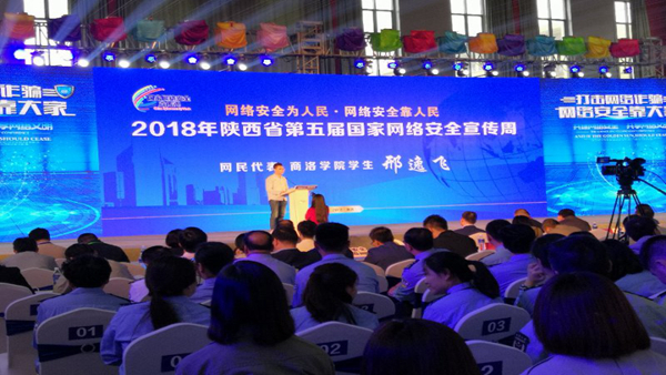我校100余名師生參加開(kāi)幕式,電信學(xué)院學(xué)生邢逸飛作為全省唯一的網(wǎng)民代表在開(kāi)幕式上發(fā)言。邢逸飛說(shuō),自己是商洛學(xué)院的一名網(wǎng)絡(luò)評(píng)論員、學(xué)生記者,因?yàn)榻?jīng)常性參加學(xué)校組織的培訓(xùn)交流活動(dòng),所以對(duì)網(wǎng)絡(luò)宣傳和輿論引導(dǎo)的重要性有著切身的認(rèn)識(shí)。維護(hù)網(wǎng)絡(luò)安全,爭(zhēng)做中國(guó)好網(wǎng)民,大學(xué)生要發(fā)揮好“排頭兵”的作用。他在大會(huì)上代表大學(xué)生和廣大網(wǎng)民鄭重承諾:一要提高政治站位,積極參加學(xué)校和網(wǎng)信部門(mén)舉辦的形式多樣的網(wǎng)絡(luò)安全教育活動(dòng),帶頭在校園中宣傳網(wǎng)絡(luò)安全知識(shí),讓“網(wǎng)絡(luò)安全為人民,網(wǎng)絡(luò)安全靠人民”的理念深入人心;二要堅(jiān)守網(wǎng)絡(luò)理性,明辨慎思,不人云亦云亂跟風(fēng),杜絕形形色色的網(wǎng)絡(luò)誘惑,保持客觀理性地接收信息、傳播信息,要慎重地轉(zhuǎn)發(fā),客觀地進(jìn)行評(píng)論,既不當(dāng)傳謠者,也不做“網(wǎng)絡(luò)暴民”;三要遵守網(wǎng)絡(luò)法規(guī),做網(wǎng)絡(luò)安全法的宣傳者,做網(wǎng)絡(luò)安全法的執(zhí)行者,做網(wǎng)絡(luò)安全法的捍衛(wèi)者,做網(wǎng)絡(luò)安全法的建設(shè)者;四要用網(wǎng)而不沉溺于網(wǎng)絡(luò),用青春傳播正能量,踐行社會(huì)主義核心價(jià)值觀,把自己鍛造成堪當(dāng)民族復(fù)興大任的時(shí)代新人。