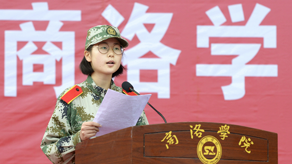 2018級(jí)學(xué)生魯紫蕊代表全體參訓(xùn)學(xué)生在大會(huì)上發(fā)言。她表示,將始終秉持我?!安┞剰?qiáng)志,正道直行”的校訓(xùn),刻苦學(xué)習(xí)、全面發(fā)展、努力進(jìn)步,向父母、學(xué)校、社會(huì)交出一份滿意的答卷。
