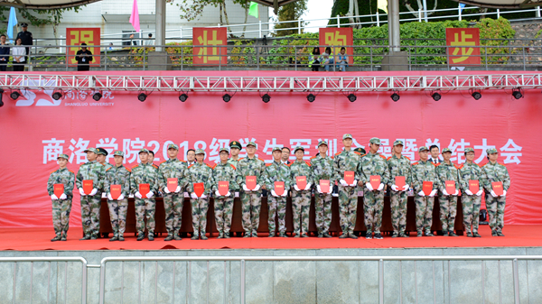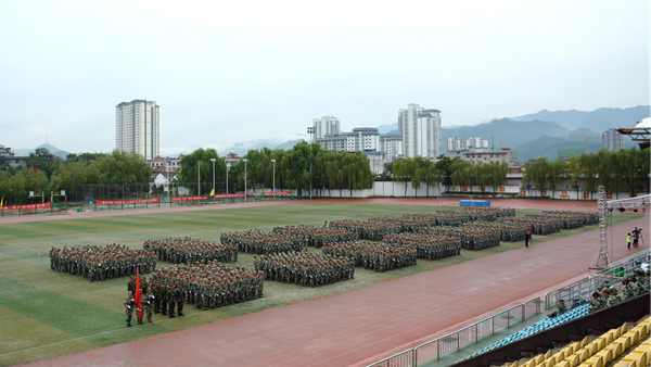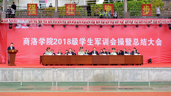 汗水書(shū)寫(xiě)青春,磨練見(jiàn)證成長(zhǎng)。9月20日,我校隆重舉行2018級(jí)學(xué)生軍訓(xùn)會(huì)操暨總結(jié)大會(huì),檢閱2018級(jí)學(xué)生軍訓(xùn)成果,并對(duì)軍訓(xùn)中表現(xiàn)突出的先進(jìn)集體與先進(jìn)個(gè)人進(jìn)行表彰。校領(lǐng)導(dǎo)龍治剛、范新會(huì)、魏書(shū)堂、劉寶盈、劉勇,中國(guó)人民武警部隊(duì)商洛支隊(duì)副參謀長(zhǎng)、軍訓(xùn)團(tuán)團(tuán)長(zhǎng)呂喆少校,中國(guó)人民武警部隊(duì)商洛支隊(duì)執(zhí)勤一大隊(duì)隊(duì)長(zhǎng)郭偉少校出席大會(huì)。各二級(jí)學(xué)院黨政主要負(fù)責(zé)人、有關(guān)職能部門(mén)負(fù)責(zé)人、全體2018級(jí)學(xué)生及輔導(dǎo)員參加了大會(huì)。大會(huì)由黨委副書(shū)記彭虎軍主持。