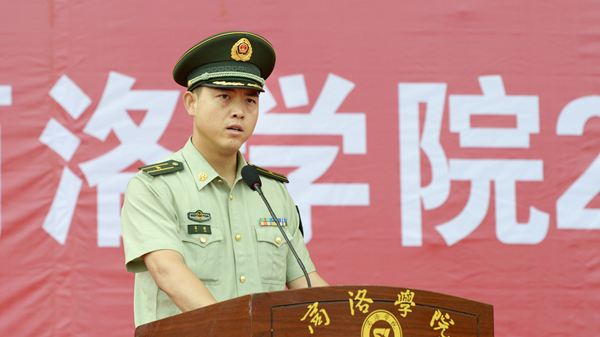 副校長(zhǎng)劉勇在講話中指出,軍訓(xùn)不僅是技能的訓(xùn)練、體質(zhì)的增強(qiáng),更是對(duì)意志的磨練、能力的提升。在14天里,新生們同甘共苦、互幫互助、團(tuán)結(jié)合作,在艱苦的環(huán)境中磨礪自我、挑戰(zhàn)自我,這些經(jīng)歷是一筆寶貴的精神財(cái)富,能夠幫助新生們?cè)趯?lái)的學(xué)習(xí)、生活中更有信心去迎戰(zhàn)困難、克服挫折,更有能力去適應(yīng)環(huán)境、成就自我。他希望新生們堅(jiān)持和發(fā)揚(yáng)在軍訓(xùn)中鍛造的思想品質(zhì)、鐵的紀(jì)律和永不言敗的奮斗精神,以飽滿的熱情投入到學(xué)習(xí)知識(shí)和學(xué)習(xí)做人的實(shí)踐中去,時(shí)刻牢記肩負(fù)的歷史責(zé)任與使命,努力成長(zhǎng)為無(wú)愧于時(shí)代要求的有理想、有擔(dān)當(dāng)、有作為的合格大學(xué)生。