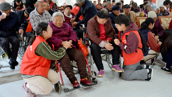 為傳承中華民族尊老愛老的傳統(tǒng)美德,弘揚(yáng)“奉獻(xiàn)、友愛、互助、進(jìn)步”的志愿精神,10月14日,在重陽節(jié)即將來臨之際,校團(tuán)委和商洛市慈善協(xié)會組織我校青年志愿者協(xié)會、馬克思主義學(xué)院志愿服務(wù)隊(duì)百余名志愿者赴百順山莊老年公寓開展“九九重陽節(jié) 濃濃敬老情”志愿服務(wù)活動。志愿者們幾人一組,攙扶老人下樓散心,幫他們推輪椅,陪他們聊天、講笑話、唱歌,為他們包餃子,叮囑他們照顧好身體,并貼心送上暖手寶,讓他們感受到更多來自社會和青年人的溫暖與關(guān)懷。志愿者們還精心準(zhǔn)備了《雙截棍》《拍拍操》《漢服舞》《映山紅》等文藝表演,為老人們帶去歡笑與快樂。公寓的老人們也動情地演唱了紅歌,幸福之情溢于言表。溫暖人心的志愿活動展現(xiàn)了我校學(xué)子尊老愛老的道德品質(zhì),增強(qiáng)了新時(shí)代青年人孝老愛親的內(nèi)在自覺,堅(jiān)定了青年志愿者們持之以恒尊老助老的信念決心。