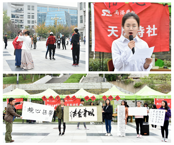 舉行“九九重陽(yáng)心濃濃社團(tuán)情”文藝演出。清商漢服學(xué)社、書(shū)畫(huà)協(xié)會(huì)、丹江文學(xué)社等社團(tuán)在學(xué)校一號(hào)教學(xué)樓后的玉蘭廣場(chǎng)表演了精彩的文藝節(jié)目,以“文”“舞”結(jié)合演繹中國(guó)傳統(tǒng)文化的絢爛多彩,為重陽(yáng)佳節(jié)增彩助興,吸引了眾多師生駐足欣賞。活動(dòng)現(xiàn)場(chǎng),漢服愛(ài)好者以靈動(dòng)曼妙之姿將漢服之美、民族經(jīng)典演繹的淋漓盡致;天風(fēng)詩(shī)社成員現(xiàn)場(chǎng)解讀詞作《阮郎歸》,聲情并茂、情真意切地展現(xiàn)了中華詩(shī)詞的優(yōu)美雅致;書(shū)法表演者以行云流水的筆法,與觀眾一同品味書(shū)法墨香、傳承經(jīng)典文化。