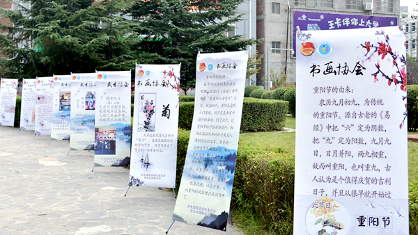 舉辦“禮樂(lè)重陽(yáng) 薪火相傳”傳統(tǒng)文化藝術(shù)展。校團(tuán)委精心制作20多幅海報(bào),于重陽(yáng)節(jié)當(dāng)天在一號(hào)教學(xué)樓前展出,展覽圍繞重陽(yáng)節(jié)的由來(lái)、起源、習(xí)俗、相關(guān)詩(shī)詞等方面,詳細(xì)介紹了重陽(yáng)節(jié)的歷史與文化內(nèi)涵,激發(fā)了當(dāng)代大學(xué)生對(duì)傳統(tǒng)文化的熱情,營(yíng)造了尊老敬老、歡度重陽(yáng)佳節(jié)的校園文化氛圍,受到了師生的歡迎。