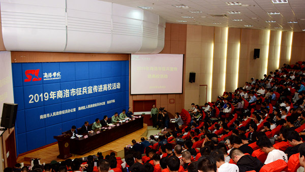 5月9日,2019年商洛市征兵宣傳進(jìn)高?;顒?dòng)在我校舉行。校黨委副書記彭虎軍,商洛軍分區(qū)副司令員李水龍大校、動(dòng)員處處長(zhǎng)周武強(qiáng),商州區(qū)人民武裝部部長(zhǎng)曹建明上校出席活動(dòng)。商洛市、商州區(qū)人民政府征兵辦公室及市退役軍人事務(wù)局有關(guān)領(lǐng)導(dǎo),我校學(xué)生處負(fù)責(zé)人,各學(xué)院黨總支書記、學(xué)工辦主任,全體輔導(dǎo)員、學(xué)生代表約500人參加了活動(dòng)。活動(dòng)由周武強(qiáng)主持。