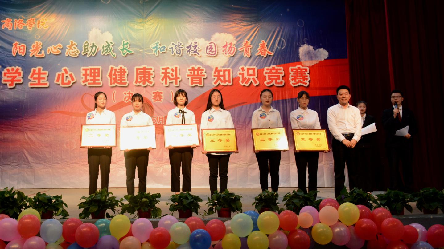 5月10日下午,我校在大學(xué)生活動中心舉辦首屆大學(xué)生心理健康科普知識競賽(決賽)。校黨委副書記彭虎軍蒞臨決賽現(xiàn)場并為優(yōu)勝者頒獎。商洛職業(yè)技術(shù)學(xué)院學(xué)工部負(fù)責(zé)人與我校學(xué)工部負(fù)責(zé)人,各二級學(xué)院黨總支書記、學(xué)工辦主任、全體輔導(dǎo)員以及學(xué)生代表共計600余人一同觀看了本次比賽。