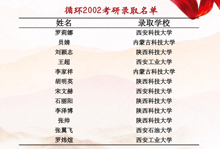 優(yōu)秀的隊(duì)伍從來不打無準(zhǔn)備之仗。循環(huán)2002班從大三開始,即在班委會(huì)帶領(lǐng)下與學(xué)院老師、大四畢業(yè)生展開考研聯(lián)動(dòng),充分利用考研臨時(shí)黨支部、先進(jìn)事跡分享會(huì)等渠道,廣泛了解考研備考、初試、復(fù)試、調(diào)劑等環(huán)節(jié),不斷堅(jiān)定信念,夯實(shí)基礎(chǔ),形成了良好的備考氛圍。在2024年碩士研究生招生考試中,循環(huán)2002班全班考研上線14人,上線率高達(dá)43.75%,成功錄取12人,錄取率高達(dá)85.71%,名列全校前茅。班級(jí)里還有像17#531宿舍這樣的優(yōu)良學(xué)風(fēng)宿舍,其中5人考研錄取,2人就業(yè)。在談到備考期間的經(jīng)歷時(shí),該宿舍舍長李澤博說:“平均每天學(xué)習(xí)9小時(shí)左右,后期達(dá)到每天11個(gè)小時(shí),白天各自努力,晚上回宿舍時(shí)相互交流學(xué)習(xí)中的問題,比如抽查數(shù)學(xué)中的重要概念和基本公式以及英語單詞的背誦等等。每個(gè)人都全力以赴,力爭上岸,每個(gè)人都在為自己的夢(mèng)想而奮力拼搏!”