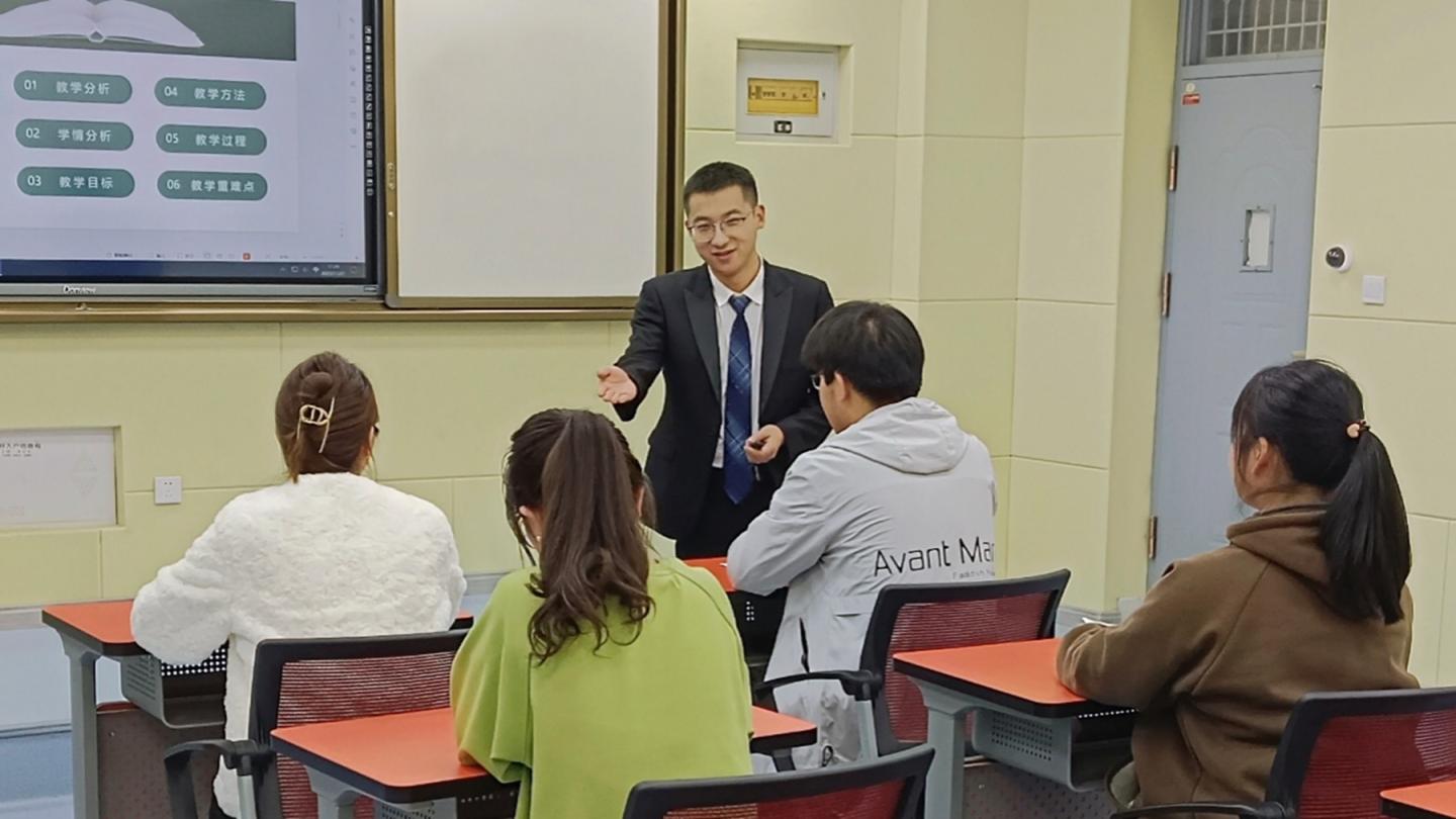 教學(xué)比賽是提升教學(xué)水平和指導(dǎo)學(xué)生能力的有效途徑。作為新進(jìn)教師,他同時參加了青年教師教學(xué)技能競賽和課程思政講課比賽,并獲得學(xué)校青年教師教學(xué)技能競賽二等獎和“課程思政教學(xué)骨干”稱號。學(xué)生備賽時,他扮演了多重角色——既是“導(dǎo)演”,又是“演員”,模擬各種可能出現(xiàn)的場景,幫助學(xué)生提升臨場應(yīng)變能力。在不斷的學(xué)習(xí)中師生共同成長,“學(xué)習(xí)不丟人,不會就去問,就去學(xué)”成為了他和學(xué)生們之間的共識。