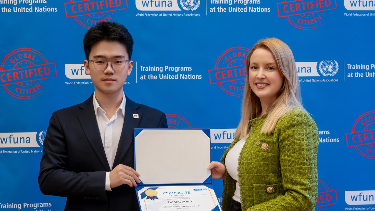 “選擇比努力更重要,但正確的選擇需要更清醒的認知?!碑敱挥浾邌柤俺砷L關鍵詞時,洪梓航這樣回答。這位工科生選擇站上聯(lián)合國舞臺,源自對自身發(fā)展的清晰規(guī)劃。洪梓航的選拔經(jīng)歷頗具挑戰(zhàn)——既要突破專業(yè)壁壘,在純英文面試中展現(xiàn)對國際事務的深度認知,又要超越舒適區(qū),將工科思維與全球治理需求精準對接。他坦言:“認清差距后的定向突破是關鍵?!闭沁@種清醒認知,讓他在與來自國際關系、新聞傳播等專業(yè)選手的競爭中,憑借對“‘一帶一路’新能源建設”的獨到見解脫穎而出。