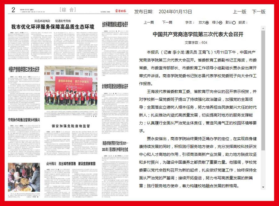 商洛日?qǐng)?bào):中國(guó)共產(chǎn)黨商洛學(xué)院第三次代表大會(huì)召開(kāi)