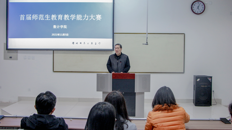 為進一步強化師范生教學基本功和教學能力,培養(yǎng)高素質(zhì)專業(yè)化創(chuàng)新型教師隊伍,彰顯師范專業(yè)特色,11月5日下午,數(shù)計學院舉辦了數(shù)學與應用數(shù)學專業(yè)首屆師范生教育教學能力大賽。數(shù)計學院院長李超出席大賽,學校教學督導團專家張曉虎、王建芳、李亞文、房琳及數(shù)計學院數(shù)學與應用數(shù)學專業(yè)相關教師擔任大賽評委。