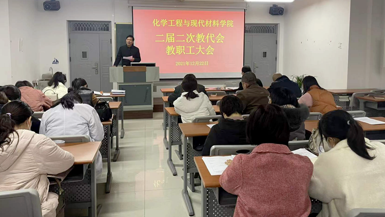 教代會在雄壯的國歌聲中開幕。周春生在會上對《化學(xué)工程與現(xiàn)代材料學(xué)院“十四五”事業(yè)發(fā)展規(guī)劃》《化學(xué)工程與現(xiàn)代材料學(xué)院2021年工作總結(jié)和2022年工作計劃》《化學(xué)工程與現(xiàn)代材料學(xué)院崗位績效工資分配辦法》向與會人員作了說明。