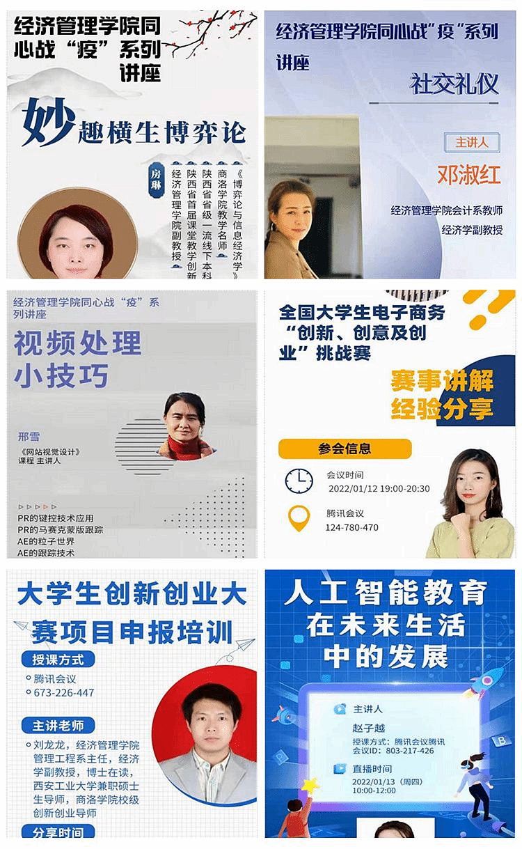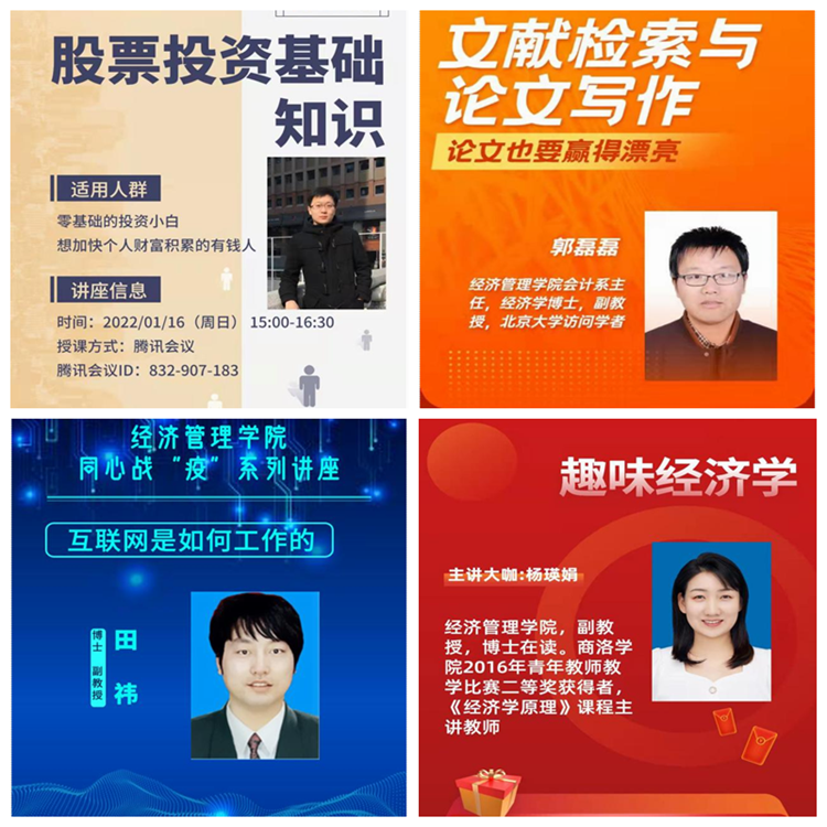 開展公益講座,倡導(dǎo)師生健康生活學(xué)習(xí)。學(xué)院圍繞疫情防控要求和學(xué)院專業(yè)特色,持續(xù)推出師生關(guān)注度高的科普教育、文獻檢索、趣味經(jīng)濟學(xué)、個人理財、學(xué)科競賽等公益講座,倡導(dǎo)師生樹立科學(xué)健康的生活學(xué)習(xí)方式。