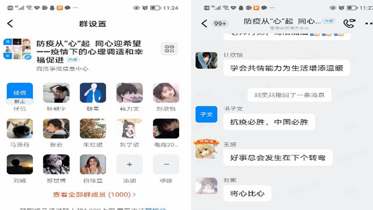 任倩老師分別從“感受樂觀的力量”、“ABCDE樂觀思維模式”、“心理調(diào)適建議”三個(gè)方面結(jié)合學(xué)生學(xué)習(xí)生活現(xiàn)狀,為1000余名在線師生進(jìn)行了生動(dòng)的心理健康知識(shí)講解。就疫情突發(fā),校園臨時(shí)封閉管理期內(nèi)可能產(chǎn)生的焦慮多疑、惶恐不安、悲傷抑郁等心理問題提出了調(diào)試方法。通過線上互動(dòng)讓大家了解“共情”,喚醒“共情”,傳遞“共情”,以積極健康的心態(tài)面對生活,共克時(shí)艱!