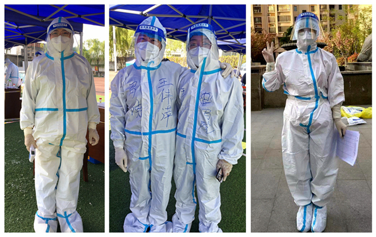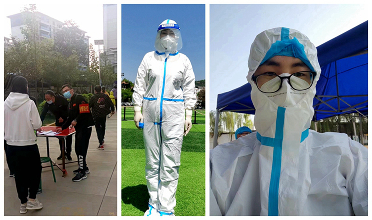 ——廣大教師響應(yīng)號召,積極參與志愿服務(wù)。4月8日首場全員核酸檢測拉開序幕,工作人員緊缺,馬克思主義學(xué)院教師安梅、王偉萍、王貝貝主動請纓,穿上防護服,變身“大白”,在炎炎烈日下協(xié)助醫(yī)護人員完成檢測任務(wù)。4月11日,組織部發(fā)出《致全校各級黨組織和廣大共產(chǎn)黨員的倡議書》后,馬克思主義學(xué)院教師黨員積極響應(yīng),踴躍報名。劉健、葉肖、鞏麗麗、王貝貝、王偉萍等同志參與了校內(nèi)志愿服務(wù),高婷婷、宋秀方等同志積極擔任了所在小區(qū)志愿者。他們起早貪黑,頂著烈日、冒著風雨為疫情防控做出積極貢獻。還有肖歲利等非黨員教師也積極向組織表達了參加志愿服務(wù)的強烈愿望。