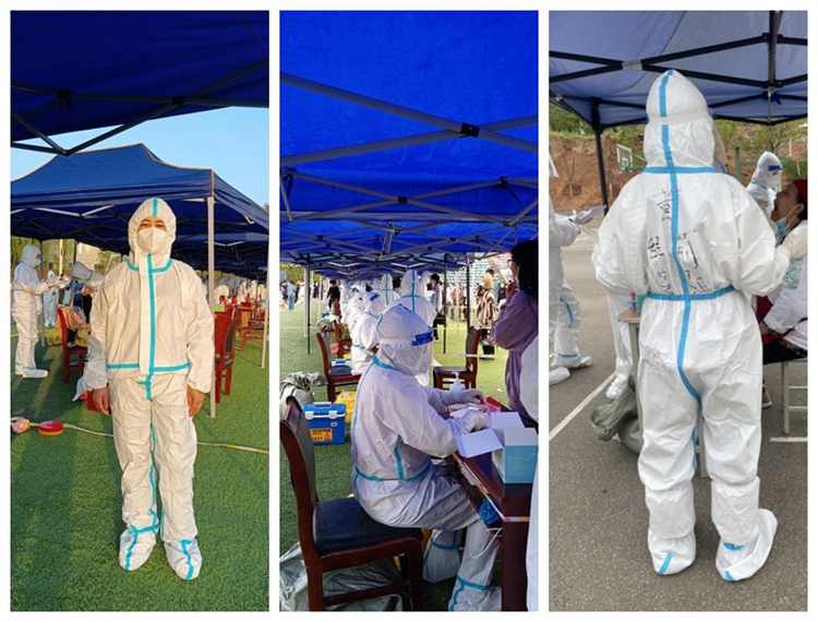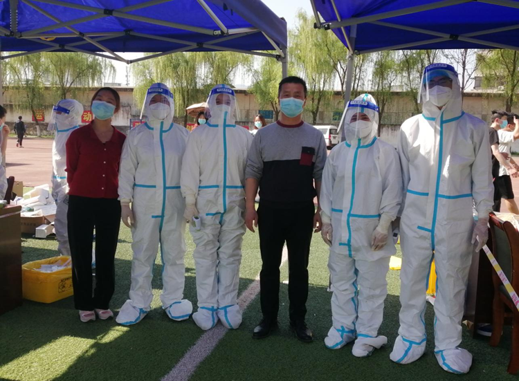 做好志愿服務(wù),發(fā)揮先鋒作用。在學(xué)校大操場(chǎng),鄧淑紅、楊鵬飛、李娜娜等教師身穿防護(hù)服,克服酷暑,連續(xù)參與全校學(xué)生核酸檢測(cè)任務(wù);在學(xué)校小操場(chǎng),黃荊晶、周方舟、丁燕琳等教師引導(dǎo)廣大教職工有序排隊(duì)、信息錄入、掃碼測(cè)溫;南院家屬區(qū),郭磊磊老師指導(dǎo)幫助退休教職工和年長(zhǎng)家屬掃碼、填報(bào)相關(guān)個(gè)人信息;青年教師公寓檢測(cè)區(qū)采樣點(diǎn),王程老師協(xié)助采樣工作人員開展測(cè)溫、清理工作臺(tái)、現(xiàn)場(chǎng)消殺。