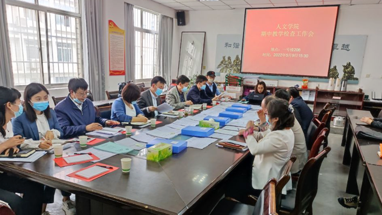 5月9日下午,黨委副書(shū)記彭虎軍一行9人深入人文學(xué)院進(jìn)行期中教學(xué)專(zhuān)項(xiàng)檢查。人文學(xué)院黨政領(lǐng)導(dǎo)班子成員、督導(dǎo)組成員、各系負(fù)責(zé)人以及部分教師代表參加專(zhuān)項(xiàng)檢查座談會(huì)。院長(zhǎng)張文諾作了專(zhuān)題匯報(bào)并陪同檢查了相關(guān)教學(xué)資料。