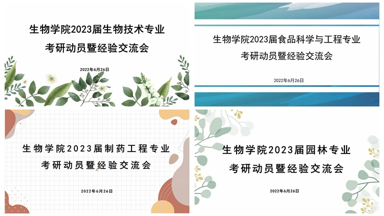為幫助2023屆畢業(yè)生高效備戰(zhàn)研究生考試,指導考生選擇考研學校和專業(yè)方向,理清備考思路,6月26日晚,生物學院采取分專業(yè)、錯時錯峰方式,在丹江校區(qū)召開了2023屆畢業(yè)生考研動員會。學院黨委書記李英、院長王學軍、黨委副書記何念武、副院長梁旭華、畢業(yè)班輔導員、各專業(yè)青年教師代表、2022屆優(yōu)秀考研學生代表以及2023屆學生參加動員會。