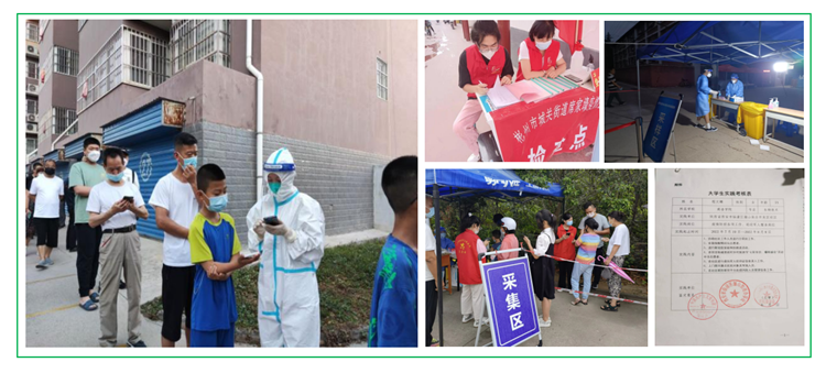 ——主動(dòng)投身,堅(jiān)守疫情防控第一線。面對各地突發(fā)的疫情,生物學(xué)子積極響應(yīng)學(xué)院號召,迎難而上,勇于擔(dān)當(dāng)。張佳蕊、楊媛媛、程文娜、蘇浩杰、趙一奇等20多位生物院學(xué)子,用實(shí)際行動(dòng)踐行抗疫精神,為抗疫貢獻(xiàn)青春志愿力量。教師郎伍營、張博、李偉、魏景等自告奮勇,承擔(dān)起核酸志愿者服務(wù),積極配合學(xué)校展開疫情防控工作。