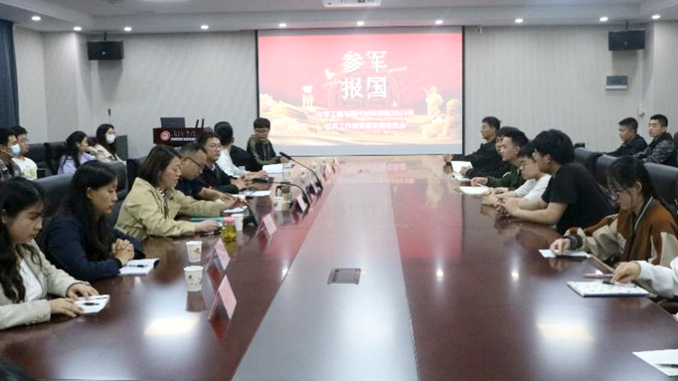 為激發(fā)大學(xué)生參軍入伍熱情,助力學(xué)校征兵工作再上新臺(tái)階,化材學(xué)院于4月18日召開2023年征兵工作政策宣講暨動(dòng)員大會(huì)。化材學(xué)院黨委書記李斌,人民武裝部副部長張文,學(xué)院全體輔導(dǎo)員,退伍學(xué)生代表及學(xué)院學(xué)生干部參加會(huì)議。會(huì)議由學(xué)工辦主任、學(xué)院征兵聯(lián)絡(luò)員李馥利主持。