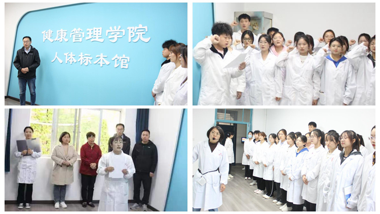 護理系系主任贠航從多方面對學(xué)院人體標本館作了介紹,實驗室中心主任陳穎宣讀了《人體標本館進館須知》,護理系教師王濤帶領(lǐng)與會師生詳細參觀了人體標本館,學(xué)生代表胡虔熙帶領(lǐng)全體學(xué)生重溫了醫(yī)學(xué)生誓言。