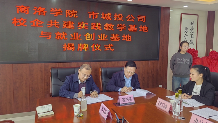 楊小鋒和葉春祥代表雙方簽訂了共建大學(xué)生就業(yè)創(chuàng)業(yè)基地協(xié)議,彭曉邦和王昱智代表雙方簽訂了實(shí)踐教學(xué)基地協(xié)議。
