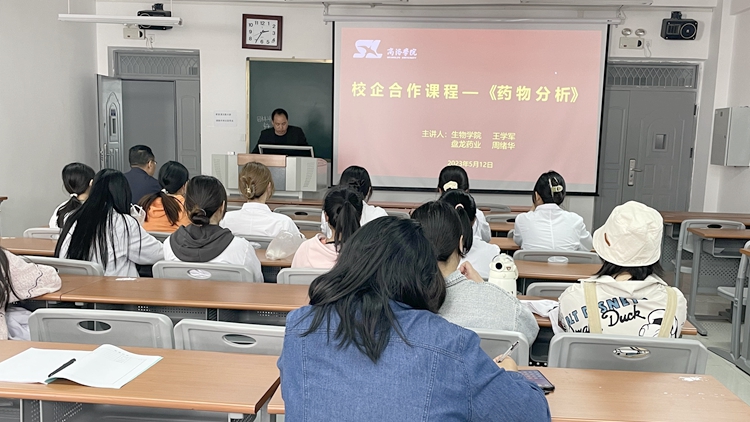 5月13日下午,由生物學(xué)院和陜西盤龍藥業(yè)集團(tuán)股份有限公司共同開發(fā)的校企合作課程建設(shè)活動在丹江校區(qū)5號教學(xué)樓開展。此項(xiàng)校企合作課程《藥物分析》是制藥工程專業(yè)必修課,校內(nèi)主講教師為生物學(xué)院王學(xué)軍教授,校外主講人為盤龍藥業(yè)藥研院的資深專家周緒華。學(xué)院制藥工程專業(yè)師生代表參加活動。