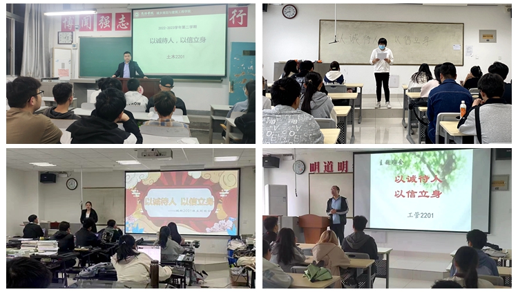 開好主題班會,將誠信轉(zhuǎn)化為行動自覺。5月17日至2月25日,學(xué)院各班主任以“以誠待人以信立身”為主題,圍繞班級管理、學(xué)風(fēng)建設(shè)、求學(xué)資助、網(wǎng)絡(luò)安全等內(nèi)容組織召開主題班會,宣傳國家生源地助學(xué)貸款及其他資助政策,普及金融安全知識,引導(dǎo)全體學(xué)生在思想上高度重視班風(fēng)、學(xué)風(fēng)建設(shè),遵守課堂和考試紀(jì)律,遵守國家法律法規(guī)和學(xué)校各項規(guī)章制度,養(yǎng)成良好的行為習(xí)慣,有效地將誠信教育轉(zhuǎn)化為大學(xué)生的思想自覺和行為自覺。