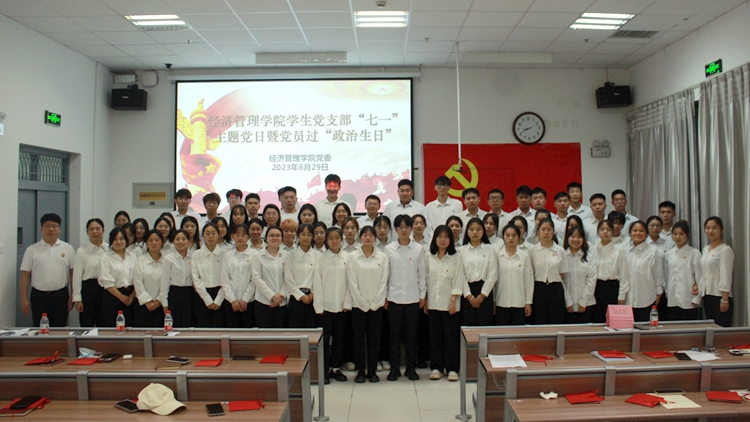 為慶祝中國共產(chǎn)黨成立102周年,扎實(shí)開展好學(xué)習(xí)貫徹習(xí)近平新時(shí)代中國特色社會主義思想主題教育,鞏固學(xué)生黨支部戰(zhàn)斗堡壘作用,6月29日晚,經(jīng)濟(jì)管理學(xué)院四個(gè)學(xué)生黨支部聯(lián)合開展慶“七一”主題黨日暨黨員過“政治生日”活動。學(xué)院黨委書記高擴(kuò)昌、院長張林、黨委副書記·副院長賈長安、副院長雷清作為學(xué)生支部指導(dǎo)聯(lián)系人,以普通黨員身份觀摩、指導(dǎo)此次活動。四個(gè)黨支部書記、全體學(xué)生黨員參加活動。
