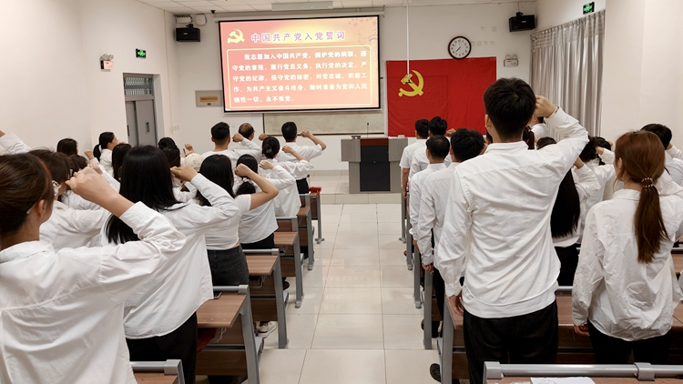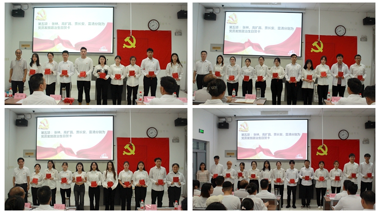 活動在莊嚴(yán)的國歌聲中拉開帷幕,賈長安宣讀過“政治生日”黨員名單。學(xué)院黨政領(lǐng)導(dǎo)為每位過“政治生日”的學(xué)生黨員頒發(fā)了賀卡,送上了生日的祝福和囑托,希望同學(xué)們時(shí)刻牢記黨員身份,注重黨性修養(yǎng),增強(qiáng)黨員意識,堅(jiān)定政治信仰,永葆共產(chǎn)黨員的本色。在學(xué)生第三黨支部書記趙東陽及學(xué)生第一黨支部書記任倩的帶領(lǐng)下,全體正式黨員及新發(fā)展的17名黨員面向鮮紅的黨旗集體宣誓,接受入黨誓詞的洗禮,進(jìn)一步堅(jiān)定理想信念,不忘初心使命。