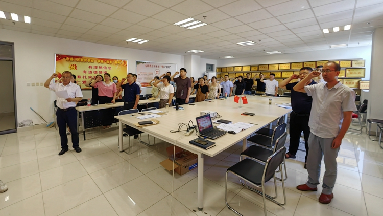 面對(duì)著鮮紅的黨旗,全體黨員舉起右臂,鏗鏘有力地進(jìn)行宣誓——“我志愿加入中國(guó)共產(chǎn)黨,擁護(hù)黨的綱領(lǐng),遵守黨的章程,履行黨員義務(wù)……”,通過宣誓儀式,黨員們又一次重溫了入黨時(shí)立下的錚錚誓言,心中澎湃萬千,紛紛表示要永遠(yuǎn)忠誠(chéng)于黨,努力學(xué)習(xí),認(rèn)真工作,永遠(yuǎn)跟黨走,將畢生年華奉獻(xiàn)于黨。