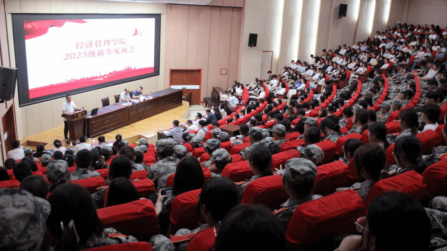 為使2023級全體新生對經(jīng)濟管理學院有更全面的了解,幫助新生更快地融入校園生活,在新生軍訓結(jié)束之際,經(jīng)濟管理學院在圖書館二樓報告廳舉行2023級新生見面會。學院黨政領(lǐng)導班子、科級以上干部、各系(部)主任,全體輔導員以及2023級430余名新生參會。見面會由學院黨委書記高擴昌主持。