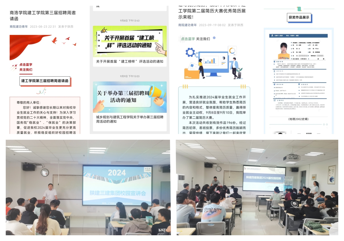 早謀劃,做好就業(yè)動員與幫扶。7月10日,建工學(xué)院成立了以學(xué)院黨委書記楊小鋒為組長的2024屆就業(yè)工作專班,制定工作方案,明確責(zé)任目標,在分析研判建筑類行業(yè)需求情況的基礎(chǔ)上,一是設(shè)計和發(fā)布建工學(xué)院第三屆招聘周邀請函,主動邀請社會用人單位進校召開宣講會;二是分專業(yè)分學(xué)制做好全體畢業(yè)生就業(yè)意向調(diào)查數(shù)據(jù)采集,明確就業(yè)方向;三是召開2024屆畢業(yè)生就業(yè)動員會,所有畢業(yè)班輔導(dǎo)員及班主任及時進班召開就業(yè)主題班會,從建筑類專業(yè)就業(yè)形勢特點、樹立正確的就業(yè)觀念、求職準備、心理輔導(dǎo)、就業(yè)安全等幾個方面為畢業(yè)生解答疑惑;四是建立家庭經(jīng)濟和就業(yè)困難畢業(yè)生幫扶臺賬,成立幫扶小組,學(xué)院班子成員主動帶頭聯(lián)系幫扶,主動開展就業(yè)助推暖心服務(wù);五是同步舉辦第三屆簡歷設(shè)計大賽,以賽促就業(yè),196名畢業(yè)生提交簡歷,評選出10份優(yōu)秀簡歷進行展示,引導(dǎo)學(xué)生設(shè)計完善簡歷為參加招聘宣講會做充分準備;六是教師主動幫扶學(xué)生做好職業(yè)規(guī)劃,城鄉(xiāng)規(guī)劃專業(yè)馬驍?shù)壤蠋熤鲃又笇?dǎo)學(xué)生設(shè)計簡歷、開展學(xué)生面試應(yīng)聘模擬等,助力學(xué)生早就業(yè)。