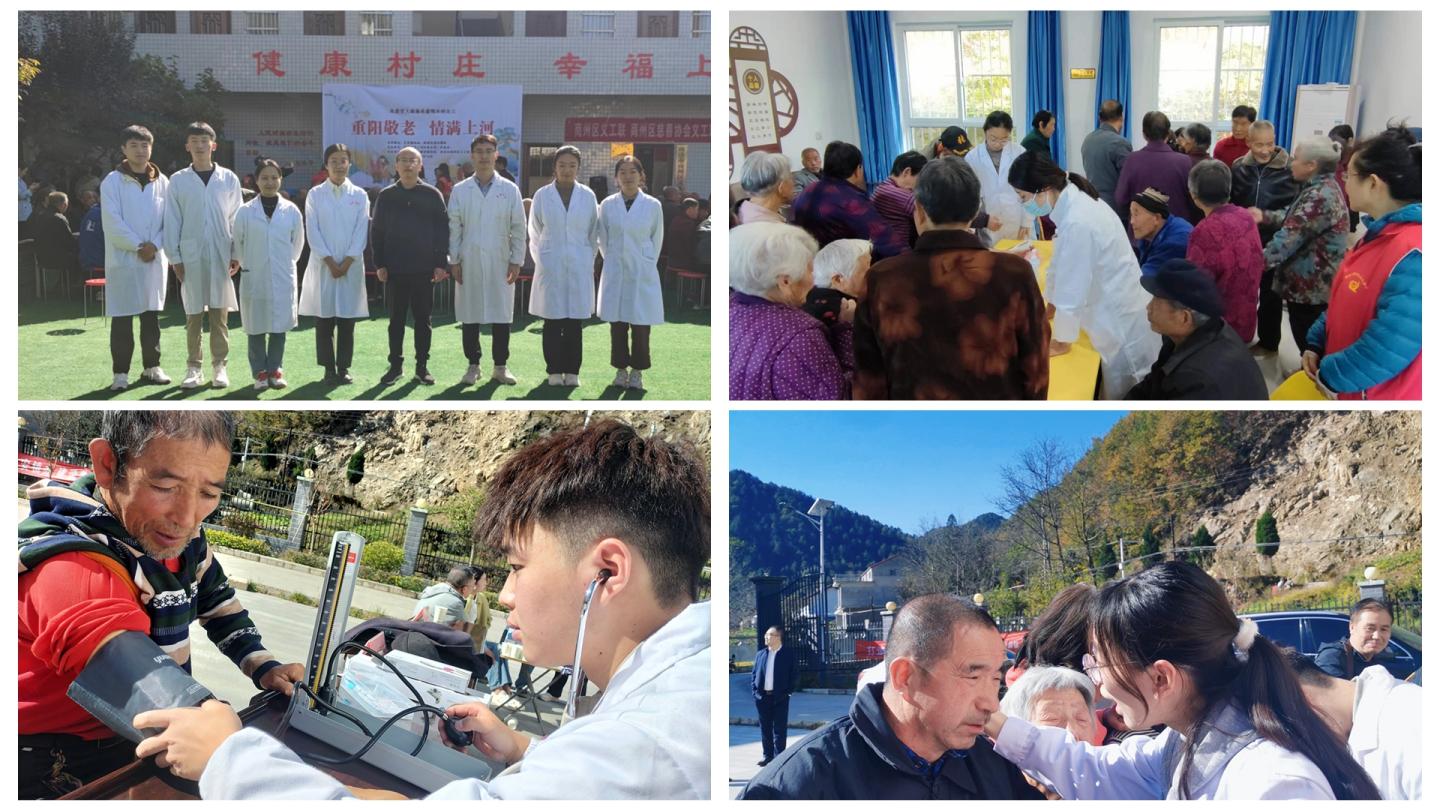 學(xué)院黨委書記王攀、副院長張曉文分別代表學(xué)院師生向兩個(gè)村莊的老人們致以親切的節(jié)日問候和良好祝愿。隨后,由志愿者們進(jìn)行義診活動(dòng),提供血壓血糖測量、康復(fù)理療、中醫(yī)耳穴壓豆、骨密度檢測等各項(xiàng)服務(wù)項(xiàng)目,同時(shí)普及健康知識,為老年人提供心理咨詢服務(wù),提升老年人健康素養(yǎng),推動(dòng)改善老年人心理健康狀況。據(jù)統(tǒng)計(jì),活動(dòng)受益群眾達(dá)200余人,師生專業(yè)細(xì)致的服務(wù),周到通俗的講解,受到了村民的廣泛好評。