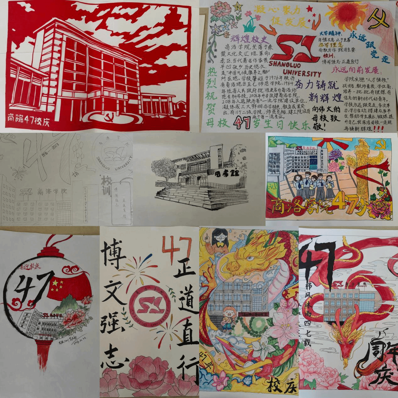 活動期間,各二級學(xué)院還通過主題班會及展板等形式為母校慶生。截止發(fā)稿前,國內(nèi)合作與校友工作處已收到校內(nèi)師生書法、繪畫、攝影等作品一百余件。