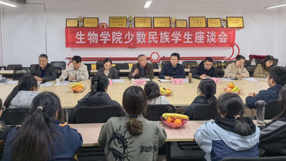 為落實(shí)“立德樹人”根本任務(wù),扎實(shí)做好少數(shù)民族學(xué)生管理服務(wù)工作,教育引導(dǎo)青年學(xué)子樹牢中華民族共同體意識(shí),11月10日,生物學(xué)院黨委召開少數(shù)民族學(xué)生座談會(huì)。學(xué)工部部長李彥廣,統(tǒng)戰(zhàn)部副部長于曉明出席會(huì)議。生物學(xué)院全體學(xué)工人員和24名少數(shù)民族學(xué)生參加會(huì)議。會(huì)議由生物學(xué)院黨委書記楊力主持。