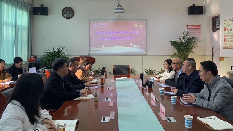 蔣正治介紹了我校馬克思主義學(xué)院的辦學(xué)特色、學(xué)科建設(shè)、師資隊(duì)伍建設(shè)、人才培養(yǎng)模式等基本情況,分享了學(xué)院近年來(lái)在思想政治教育VR虛擬實(shí)驗(yàn)室建設(shè)及教研方面成果。雙方圍繞審核評(píng)估、教育教學(xué)、學(xué)生培養(yǎng)、教師研修、黨建工作等方面討論交流。
