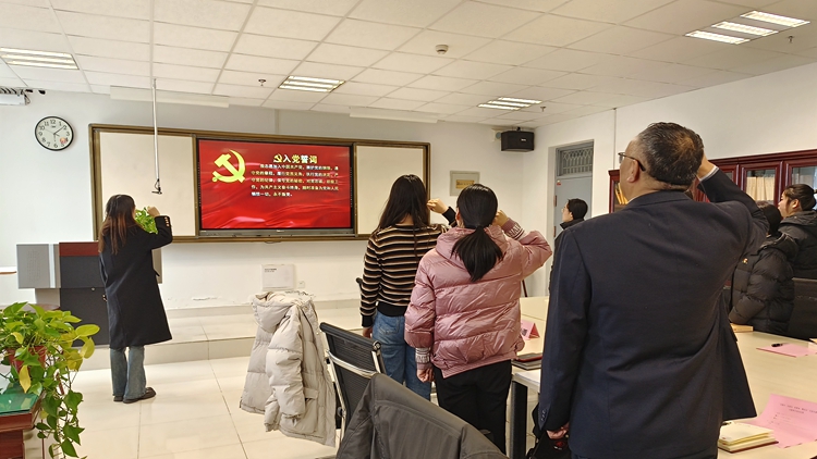 活動(dòng)中,全體黨員面向黨旗,集體重溫入黨誓詞,再次表達(dá)對(duì)黨的忠誠(chéng)和堅(jiān)定的理想信念。隨后,支部黨員合唱《沒(méi)有共產(chǎn)黨就沒(méi)有新中國(guó)》。學(xué)生黨員張嘉蕾、郭陳樂(lè)等人領(lǐng)學(xué)了《習(xí)近平著作選讀》(第二卷)相關(guān)內(nèi)容。學(xué)生黨員韓宗華、劉晨曦等圍繞自身工作學(xué)習(xí)情況與參會(huì)黨員進(jìn)行交流,紛紛表示要堅(jiān)定理想信念,提升綜合素質(zhì),充分發(fā)揮先鋒模范作用。