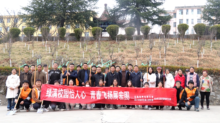 春風(fēng)送暖萬(wàn)物蘇,植樹(shù)添綠正當(dāng)時(shí)。3月13日,數(shù)計(jì)學(xué)院學(xué)生第三黨支部與后勤保障處黨支部聯(lián)合開(kāi)展“綠滿校園怡人心·青春飛揚(yáng)展宏圖”主題黨日活動(dòng)。兩個(gè)支部30余名黨員參加活動(dòng)。