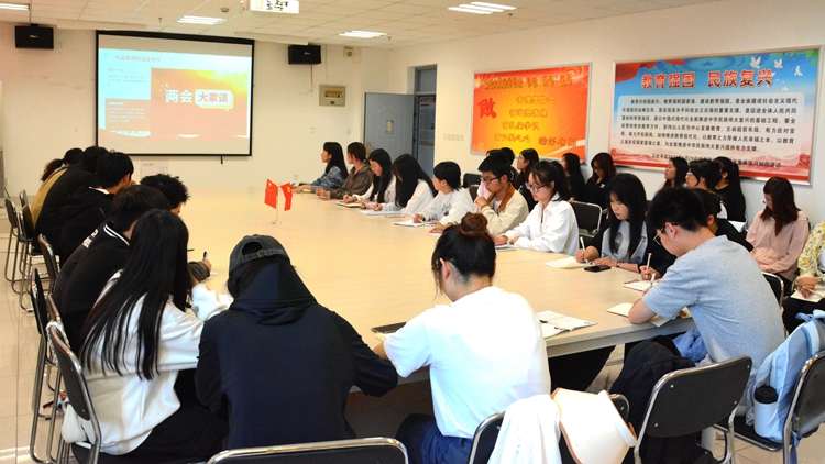 團委組織部學生干部鄭文靜從“全國兩會相關知識”“全國兩會內(nèi)容概述”“全國兩會熱點學習”三個方面領學了全國兩會相關內(nèi)容。學生干部閆相娟帶領全體人員重溫入團誓詞,再次許下不負時代、不負使命、不負未來的青春誓言。