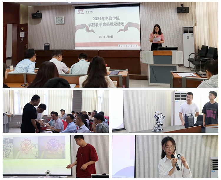 為了貫徹落實(shí)“學(xué)生中心、產(chǎn)出導(dǎo)向、持續(xù)改進(jìn)”的教學(xué)質(zhì)量發(fā)展理念,檢驗(yàn)電信學(xué)院2023-2024學(xué)年實(shí)踐教學(xué)成果,總結(jié)教學(xué)成效,學(xué)院于6月21日在丹江校區(qū)1#106報(bào)告廳舉辦2023-2024學(xué)年實(shí)踐教學(xué)成果展示活動(dòng)。教務(wù)處副處長李春、電信學(xué)院黨政負(fù)責(zé)人、教務(wù)處相關(guān)工作人員及師生代表共計(jì)120余人參加活動(dòng)?;顒?dòng)由電信學(xué)院副院長李亞文主持。