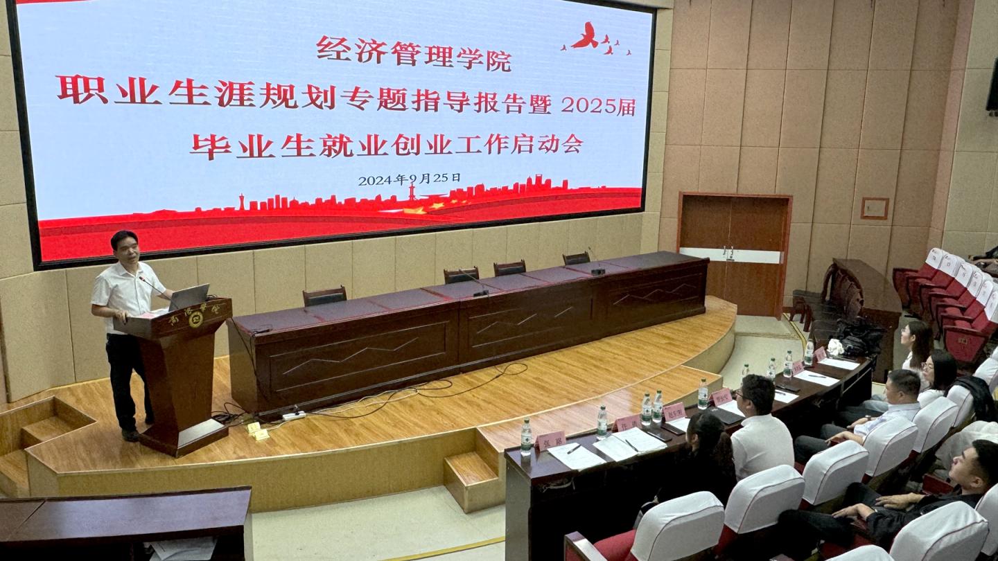 為引導(dǎo)2025屆畢業(yè)生正確認(rèn)識就業(yè)形勢,推動畢業(yè)生實現(xiàn)高質(zhì)量就業(yè),9月25日下午,經(jīng)濟管理學(xué)院舉辦職業(yè)生涯規(guī)劃專題指導(dǎo)報告暨2025屆畢業(yè)生就業(yè)創(chuàng)業(yè)工作啟動會。石羊集團副總裁、長安花糧油股份有限公司董事劉恒,學(xué)院黨委副書記賈長安,長安花糧油股份有限公司相關(guān)人員以及經(jīng)管學(xué)院畢業(yè)班輔導(dǎo)員、全體2025屆畢業(yè)生參加會議。動員會由賈長安主持。