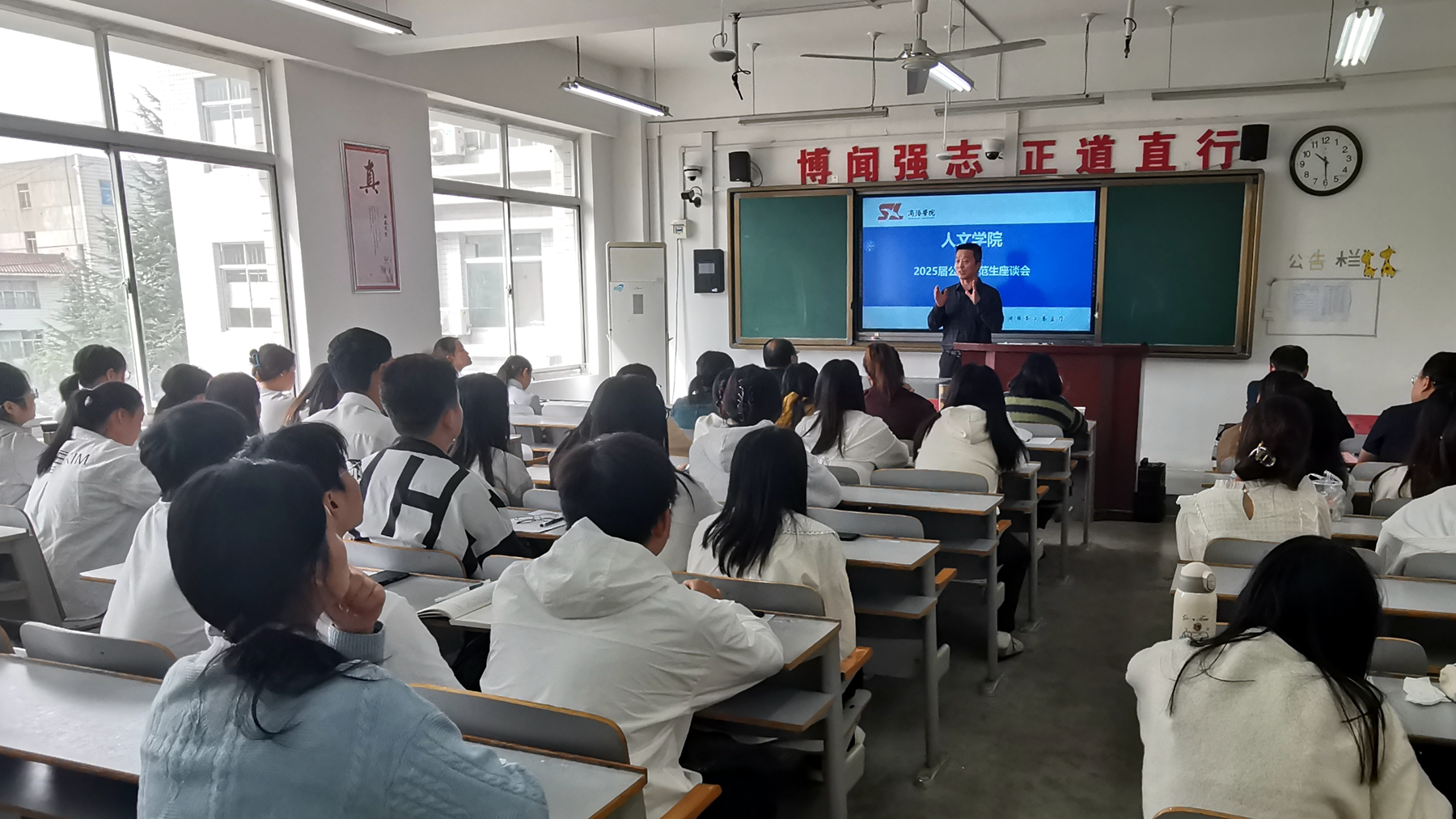 為進(jìn)一步提高地方公費(fèi)師范生教育教學(xué)質(zhì)量,促進(jìn)學(xué)生未來職業(yè)發(fā)展,10月11日,人文學(xué)院舉辦了以“勤學(xué)·擔(dān)當(dāng),聚力·未來”為主題的2025屆地方公費(fèi)師范生座談會(huì)。人文學(xué)院黨委書記高擴(kuò)昌、副院長(zhǎng)馬英群、漢語言文學(xué)系主任閔秋潔、全體輔導(dǎo)員、漢語2105班全體學(xué)生以及其他年級(jí)公費(fèi)師范生代表參加了座談。會(huì)議由黨委副書記王剛主持。