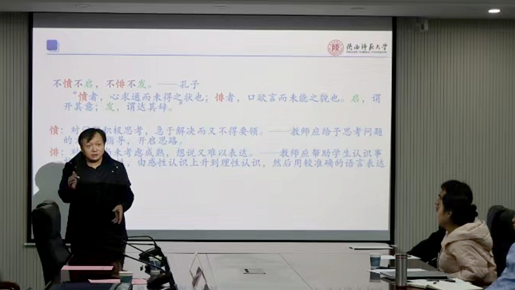 在專題培訓(xùn)環(huán)節(jié),學(xué)院邀請陜西師范大學(xué)教育學(xué)專家嚴(yán)文法教授以《優(yōu)質(zhì)課的標(biāo)準(zhǔn)及構(gòu)建策略》為題,為與會(huì)教師帶來一場精彩的專題學(xué)術(shù)報(bào)告。嚴(yán)教授通過生動(dòng)的教學(xué)應(yīng)用案例進(jìn)行詳細(xì)闡述,讓教師們深刻感受到數(shù)字化教學(xué)帶來的便利和高效。
