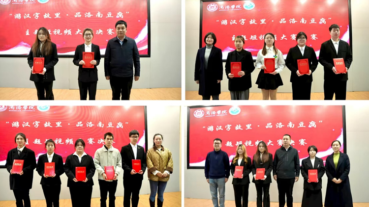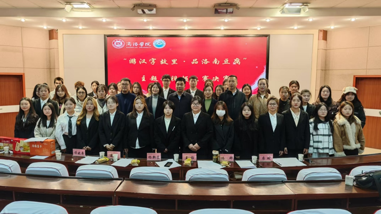 12月1日,商洛直播產(chǎn)業(yè)研究院以“游漢字故里 品洛南豆腐”為主題的首屆主題短視頻大賽決賽在圖書館一樓報告廳順利舉行。洛南縣統(tǒng)戰(zhàn)部部長楊新良、洛南縣文化和旅游局副局長馮娜、商洛學(xué)院教務(wù)處處長王怡、商洛直播產(chǎn)業(yè)研究院執(zhí)行院長房琳、商洛學(xué)院人文學(xué)院新聞傳播系主任逯祺、商洛市電子商務(wù)平臺負(fù)責(zé)人譚曉奔等6位校內(nèi)外專家擔(dān)任評委。經(jīng)過激烈角逐,人文學(xué)院“對對對隊”和經(jīng)管學(xué)院“豆腐三大隊”兩個團隊獲得大賽一等獎。