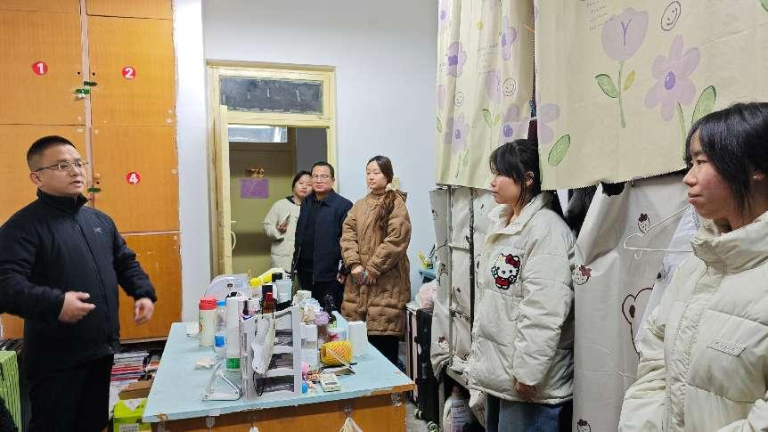 新學期伊始,2月23日晚,藝術(shù)學院黨委書記廉明及全體輔導員深入學生宿舍調(diào)研走訪,了解學生的開學準備情況。