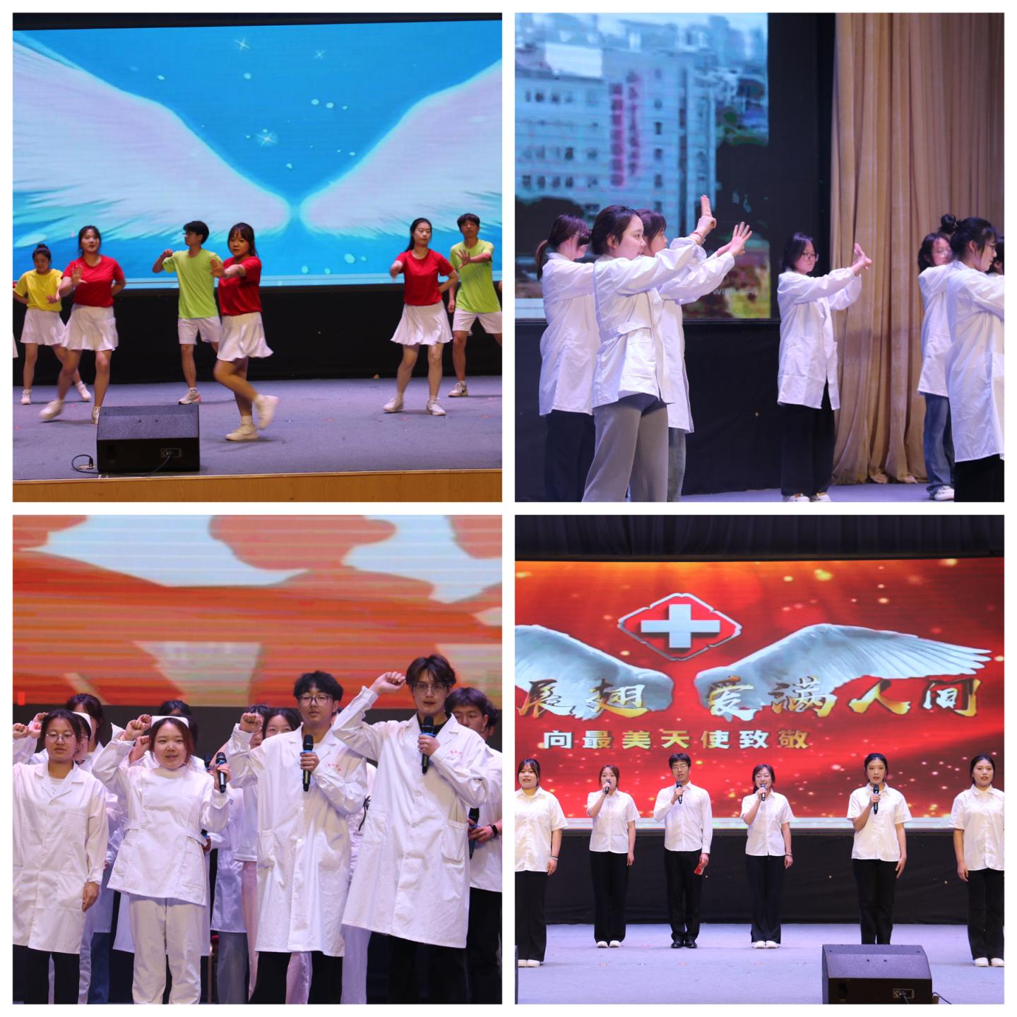 學(xué)生們用熱情洋溢的舞蹈《青春有你》展現(xiàn)了青春的活力與風(fēng)采;《健康守護(hù)操》將心肺復(fù)蘇操和洗手舞巧妙結(jié)合,傳遞了健康守護(hù)的理念;歌曲《一路生花》用優(yōu)美的旋律和動人的歌詞,表達(dá)了對護(hù)理事業(yè)的贊美;情景劇《平凡中的堅守》通過生動的表演,展現(xiàn)了護(hù)理人員在平凡崗位上的堅守與奉獻(xiàn);朗誦《大醫(yī)精誠,大愛無疆》更是將活動推向了高潮,學(xué)生們用激昂的朗誦表達(dá)了對護(hù)理事業(yè)的崇高敬意和對未來的美好憧憬。最后,一首《孤勇者》為整場晚會畫上了圓滿的句號。