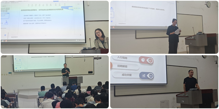 分享會(huì)上,韓杏結(jié)合自身成長(zhǎng)及擔(dān)任搜狐暢游高級(jí)項(xiàng)目經(jīng)理的相關(guān)經(jīng)歷,圍繞“職業(yè)規(guī)劃的錨點(diǎn)與動(dòng)態(tài)調(diào)整”展開分享,她強(qiáng)調(diào)職業(yè)規(guī)劃并非一成不變的“死計(jì)劃”,而要在實(shí)踐中根據(jù)自身優(yōu)勢(shì)與行業(yè)趨勢(shì)靈活調(diào)整。孟丹梅帶來(lái)了“專業(yè)學(xué)習(xí)與學(xué)歷提升的雙向賦能”主題分享,她介紹了自己考取廣西大學(xué)碩士研究生的備考經(jīng)驗(yàn)及在聯(lián)想集團(tuán)、國(guó)網(wǎng)商洛供電公司的工作歷程,建議大家盡早明確目標(biāo),做好職業(yè)規(guī)劃。史曉東則以“從校園到名企:實(shí)習(xí)與就業(yè)的探索之路”為主題,分享了自己在小米公司、中國(guó)聯(lián)通商洛市分公司的職業(yè)經(jīng)歷。強(qiáng)調(diào)實(shí)習(xí)是大學(xué)生接觸職場(chǎng)的重要窗口,建議學(xué)弟學(xué)妹們?cè)谛F陂g積極爭(zhēng)取優(yōu)質(zhì)實(shí)習(xí)機(jī)會(huì),提前了解行業(yè)動(dòng)態(tài)。在三位校友分享后,搜狐HR張恒從企業(yè)招聘視角,解讀“互聯(lián)網(wǎng)行業(yè)人才需求與能力要求”。他建議學(xué)生在校期間,通過(guò)參加學(xué)科競(jìng)賽、社團(tuán)項(xiàng)目、科研實(shí)踐等方式,全方位鍛煉自己。