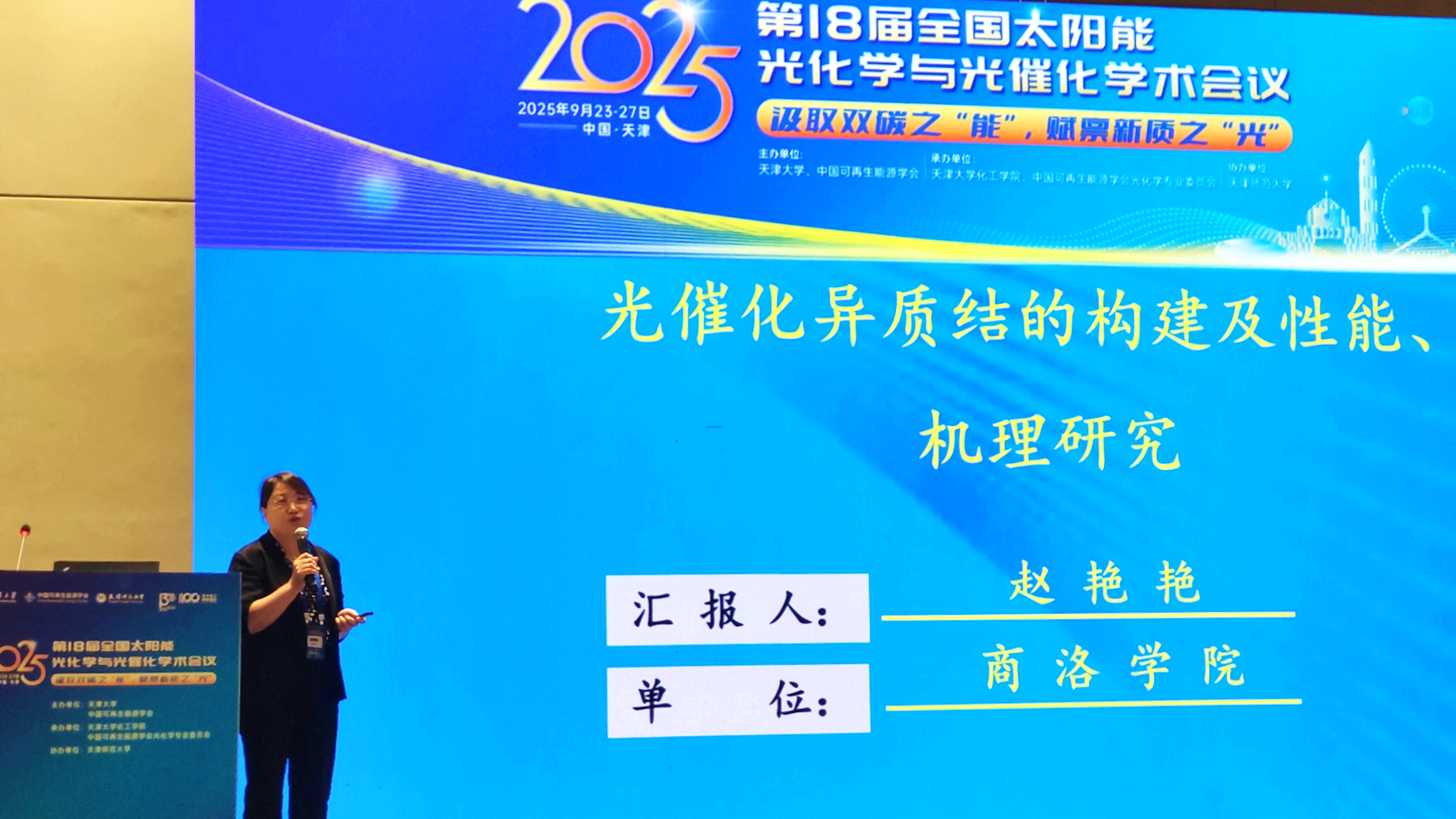 9月23日至27日,由天津大學(xué)和中國可再生能源學(xué)會光化學(xué)專業(yè)委員會主辦,天津大學(xué)化工學(xué)院和中國可再生能源學(xué)會光化學(xué)專業(yè)委員會承辦、天津師范大學(xué)協(xié)辦的“第18屆全國太陽能光化學(xué)與光催化學(xué)術(shù)會議”在天津舉行。生物學(xué)院藥用新材料團(tuán)隊負(fù)責(zé)人趙艷艷博士受邀參會并作報告。