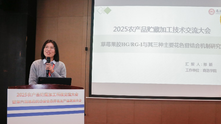 邢穎圍繞“果蔬加工及品質(zhì)調(diào)控”方向,以《草莓果膠HG/RG-Ⅰ組分與其三種主要花色苷結(jié)合機(jī)制研究》為題作主題報告,分享了該領(lǐng)域的最新研究成果。在匯報中,她還特別介紹了商洛學(xué)院生物與醫(yī)藥工程碩士點的建設(shè)進(jìn)展與人才培養(yǎng)特色,引發(fā)了與會專家的廣泛關(guān)注與熱烈討論。